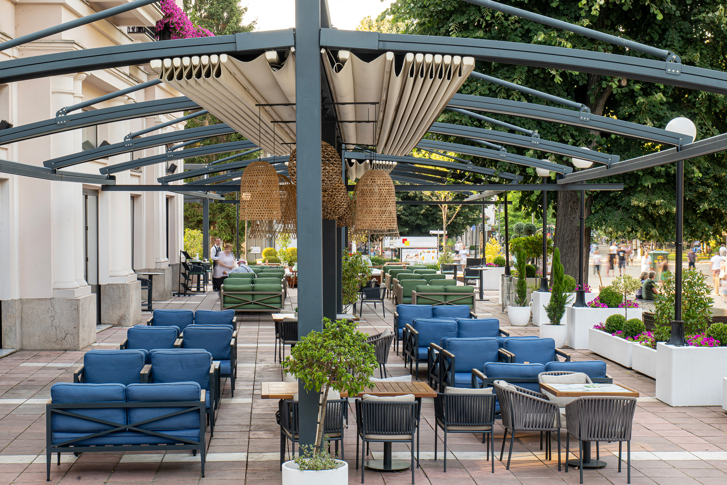 Naša terasa, smeštena u centralnom delu Promenade, dizajnirana je kako bi pružila potpuni užitak svim našim gostima. Moderno opremljen prostor sa kapacitetom od 200 sedićih mesta nudi savršenu atmosferu za opuštanje i uživanje u prelepom okruženju.